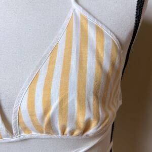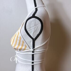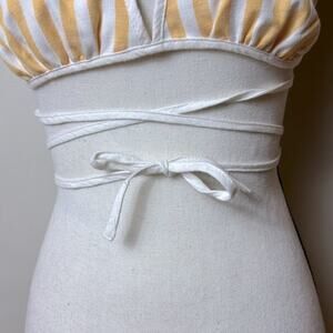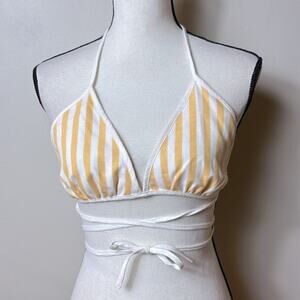NEW Free People white and golden yellow striped triangle wrap around crop top, Sizes S and XL available. Mark on brand tag to prevent returns. New without tag!