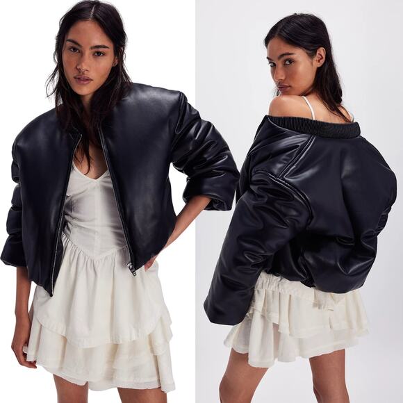 NEW Free People x BlankNYC Bold Blend Faux Leather Crop Puffer Bomber Jacket XS