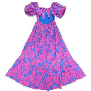 NEW Free the Roses Cottagecore Puff Sleeve Floral Cut Out Maxi Dress Fuchsia