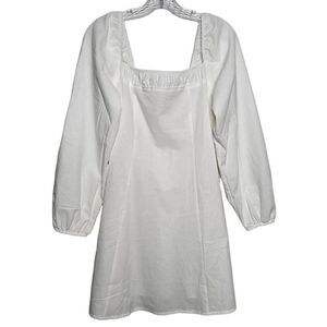 NEW Free People Square Neck Balloon Sleeves Cotton/Linen White Mini Dress Sz M