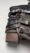 Stylish leather ankle boots with buckle details. Unique design with a rustic touch. Multi color leather with overlay to partially cover plunging front dip. This one of a kind staple can be styled with or without socks. Embellished with back lacing and adjustable leather straps with silver buckles. Inside brass zip closure. Leather upper, leather lining, leather sole. Handmade - there are natural blemishes. Perfect for versatile wear. 2.5” heel height, 5” shaft height, 11” shaft circumference Runs true to size. Color is not an exact match to stock pictures. New without box. Comes with dustbag