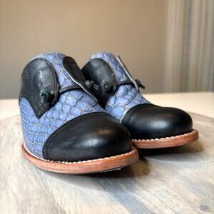 Up for sale: NEW Freebird by Steven Malena Blue Black Snakeskin Leather Mules Women’s Size 9. This item is in excellent condition. Brand new without box. Please see photos for details. Original purchase price was $275.