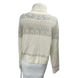 NEW French Connection Cream Gray Fair Isle Long Sleeve Turtleneck Sweater Top M