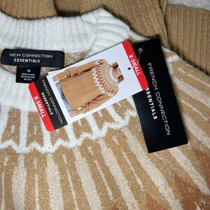 New with tags! French Connection Essentials Ladies Sweater Camel Fair Isle Color Size XS. $88 retail price