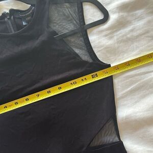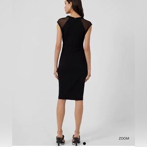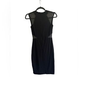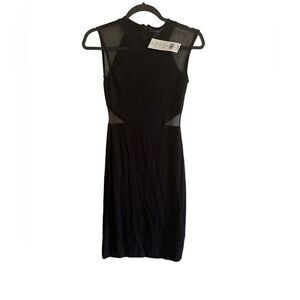 Looking for the perfect dress for a night out? Your search ends with the Viven Paneled Jersey Dress. The body con dress has a sleek, form-fitting silhouette, with mesh panels along the waistline adding a subtle contouring effect. The same mesh inserts finish the capped sleeves, adding interest to the understated design. Pair with heels for effortless glamour.