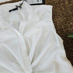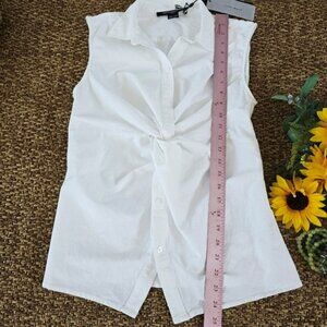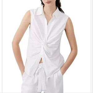 NEW French Connection Women's Blouse Size Medium White Aofie Linen Blend Twist