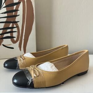 NEW French Sole Tuckernuck Camille Cap Toe Tan Black Leather Flats Size 8