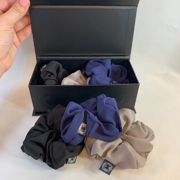 NEW Frenchie Scrunchies, set of 6 - Black/Gry/Navy