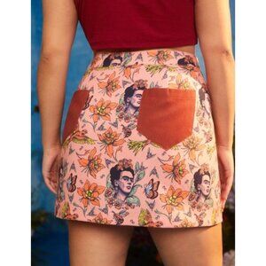 NEW Frida Kahlo X SHEIN Plus Floral & Figure Graphic Skirt Women's Plus Size 3X