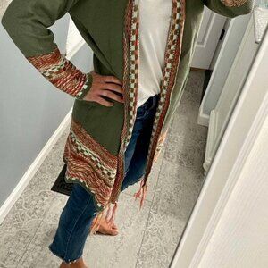 NEW Fringe Trim Tribal Duster + Bohemian Turquoise Earrings + Necklace L/XL
