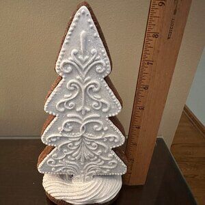 NEW Frosted Lace Gingerbread 9” Christmas Tree w/glittery sparkle