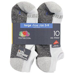 NEW Fruit Of The Loom 10 Pairs Dual Defense Wicking Odor Protection No Show Sock