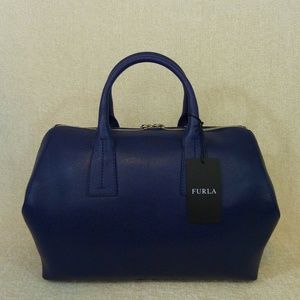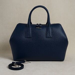 NEW Furla Papermoon Navy Blue Saffiano Leather Top Handle Satchel/Shoulder Bag