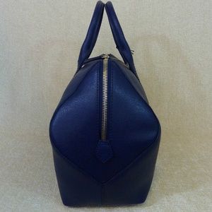 This satchel/shoulder bag is made of dark blue saffiano leather.
