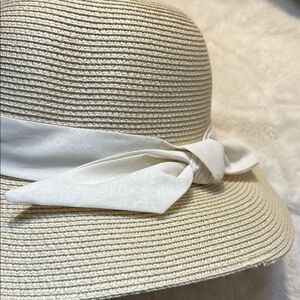 NEW Furtalk Cream Straw Hat Cream Bow Adjustable Sz Detachable Chin Strap Paper