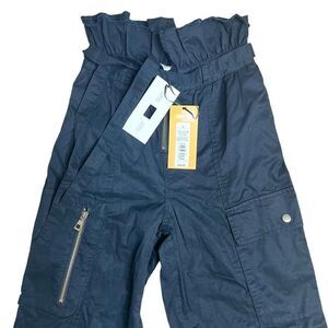 Size 0. New with tags. Some white marks on back waist band. Unsure if it will wash out. Form meets function with the High-Waisted Fold Over Cargo Pants from Future Collective with Jenny Lopez. Made from midweight cotton fabric in black, these cargo pants are designed with a high-rise waist and relaxed legs, and they have a zipper closure with waist tie. Great for everyday mixing and matching, these fun pants are finished with a cool fold-over design at the waist, plus leg cargo pockets for carrying your on-the-go essentials.