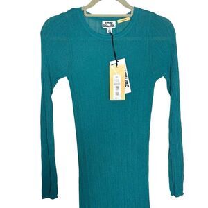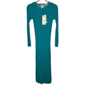 NEW Future Collective with Jenny K. Lopez Teal Blue Long Sleeve Sheer Maxi Dress