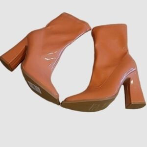 NEW! GABRIELLE UNION Coral Destinie Patent Block Heel Sock Ankle Booties 6.5.