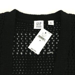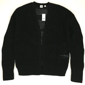 NEW! GAP Black Open Weave Crochet Cocoon Open Front Sweater With Side Slits - M