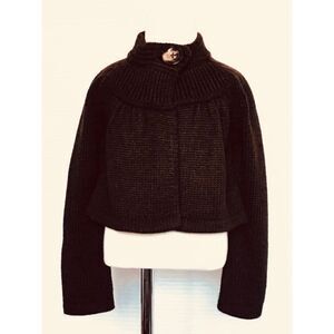 Darling bolero styling. Super cozy, made of 40% acrylic, 40% nylon and 10% angora rabbit hair. So, so soft. New, with tags