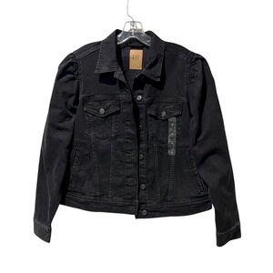 NEW GAP Puff Sleeve Black Wash Denim Jean Jacket Utility Women Size XL Classic