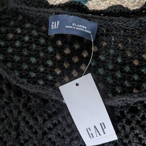 NEW GAP Women Size XL Sweater Vest Black Crochet 100% Cotton Scalloped Edge NWT