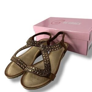 NEW GC Shoes Sandals Size 8 Brown rhinestone Embellished Low Wedge Strappy Boho