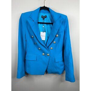 NEW GENERATION LOVE Delilah Crepe Blazer Amalfi Blue Size XS Gold Buttons Orange