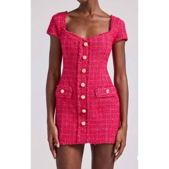 NEW GENERATION LOVE Quincy Tweed Mini Dress in Hot Pink Size XS Lined