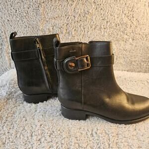 NEW GEOX Women Felicity ABX Waterproof Leather Ankle Boots Side Zip Size 6 Black
