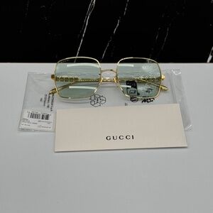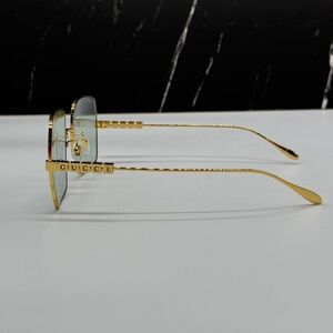 NEW GG1434S 003 GUCCI GOLD GREEN SQUARE METAL WOMEN GUCCI SUNGLASSES