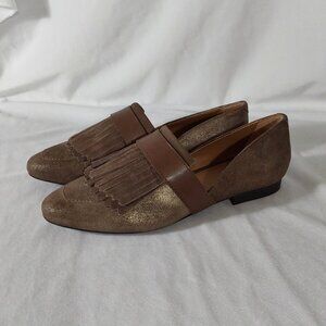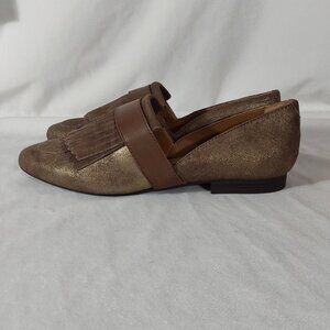 NEW! G.H. Bass & Co "Harlow" D'orsay Flat Metallic Brown Suede Weejuns - 8