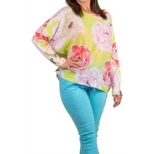 NEW GIGI MODA daria flower print batwing sweater in lime