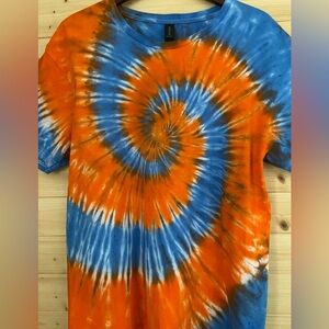 NEW GILDAN Large Unisex Soft Style Tie Dye T-Shirt Blue Orange Spiral Retro Vibe