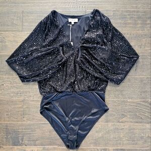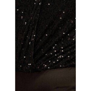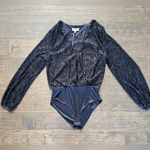 NEW GILLI Long Sleeve Sequin Wrap Bodysuit in Black Sz Medium