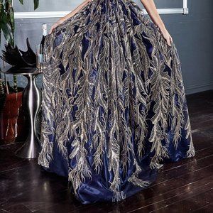 NEW GOLD NAVY LONG A-LINE OFF THE SHOULDER DRESS EMBROIDERED WITH SEQUINS CJ812