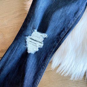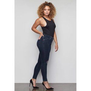 GOOD AMERICAN Good Legs Skinny Dark Wash Distress High Waist Jeans Size 14