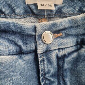 NEW GOOD AMERICAN Good Legs Skinny Jeans Indigo Blue Frayed Ankle Size 14 32/29