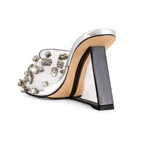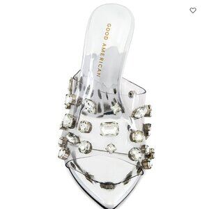 NEW GOOD AMERICAN Made In Brazil Jeweled Wedge Heels clear glass 7253m0