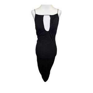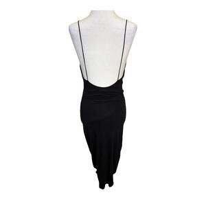 Keywords: Good American, midi dress, black dress, cut-out, backless, chic, sophisticated, spring fashion, women's dress, spaghetti neckline, evening wear, cocktail party, machine washable.