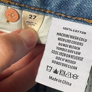 Light distressing at pockets and frayed hem