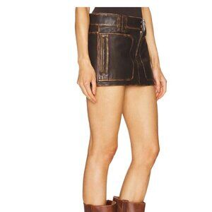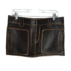 NEW GRLFRND Vintage Style Black Leather Mini Skirt w/Front Pockets NWT - Size L