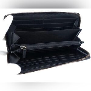 NEW GUCCI BLACK LEATHER ZIP AROUND CLUTCH WALLET. 100% AUTHENTICITY GUARANTEED. MADE IN ITALY. LUXURIOUS QUALITY WALLET IN BLACK COLOR LEATHER WITH BLIND FOR LOVE EMBOSSED ON THE FRONT. ZIP AROUND CLOSURE. 12 CARD SLOTS. 2 LARGE OPEN COMPARTMENTS FOR BILLS, CHECK BOOK SPACE, ZIPPED POCKET. WALLET MEASURES 7.5" X 4". UNISEX.