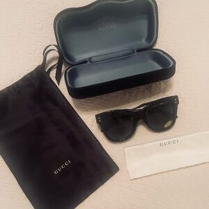 New! Gucci black cat eye sunglasses. Gold detail. Comes with what’s in pictures.