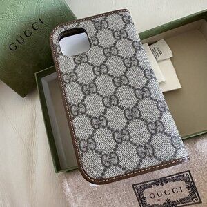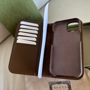 NEW GUCCI GG PRINT BROWN IPHONE CASE 15 With Wallet GG Print 100% Authentic