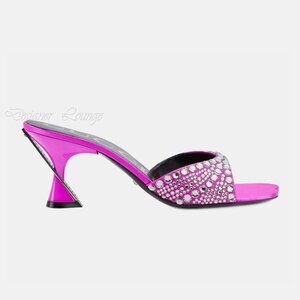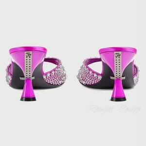 NEW GUCCI Galactica Crystal Embellished Pink Slide Sandals Heels Size EU 37 US 7