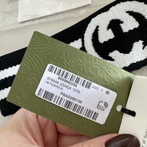 NEW GUCCI Headband HAIRBAND INTERLOCKING G BLACK WHITE SIZE M LOGO