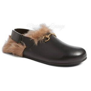 NEW GUCCI Horsebit Glasgow Fur & Black Leather Clogs Mules G 8.5 / US 9 Authent