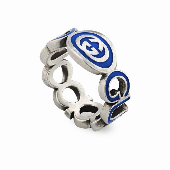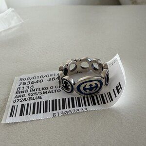 NEW GUCCI INTERLOCKING RING SILVER GG LOGO GREEN Chain Sz 26 IT 11.5 US Enamel