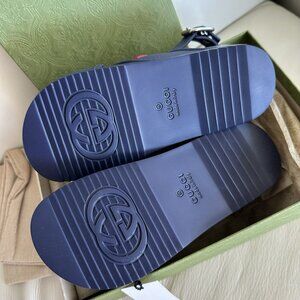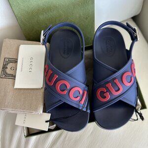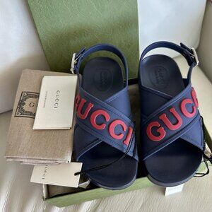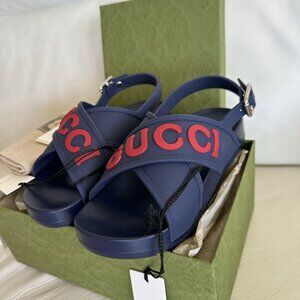 NEW GUCCI Kids Sandals Blue Rubberised Logo Sz 32